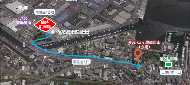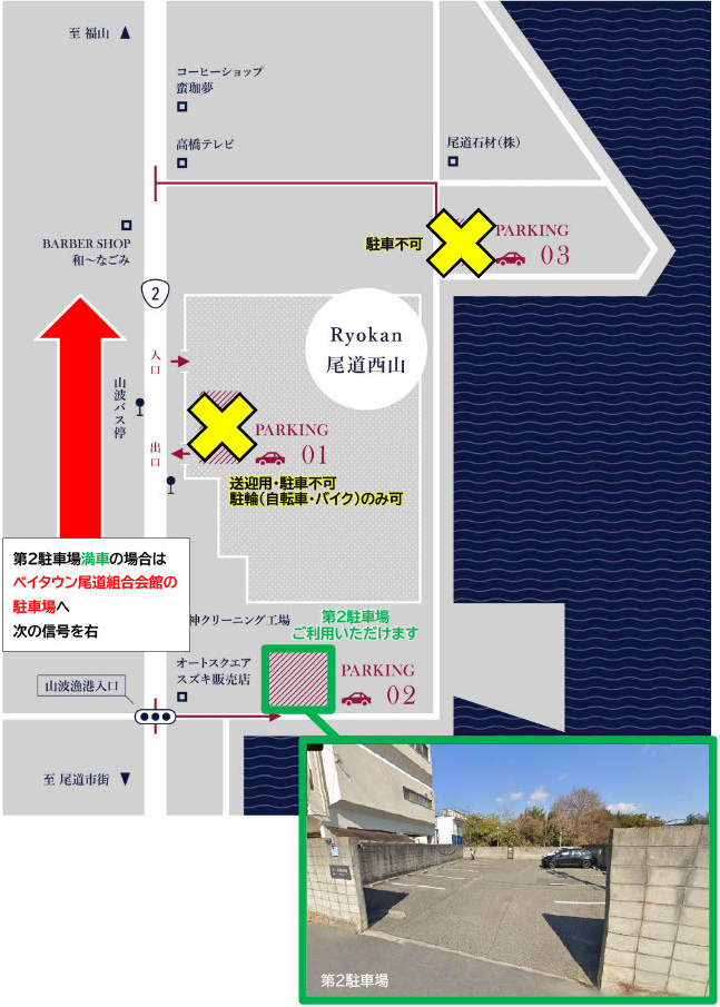 駐車台数の確保および安全面を考慮し、Ryokan尾道西山の駐車場は第2駐車場のみを参加者用とさせていただきます。