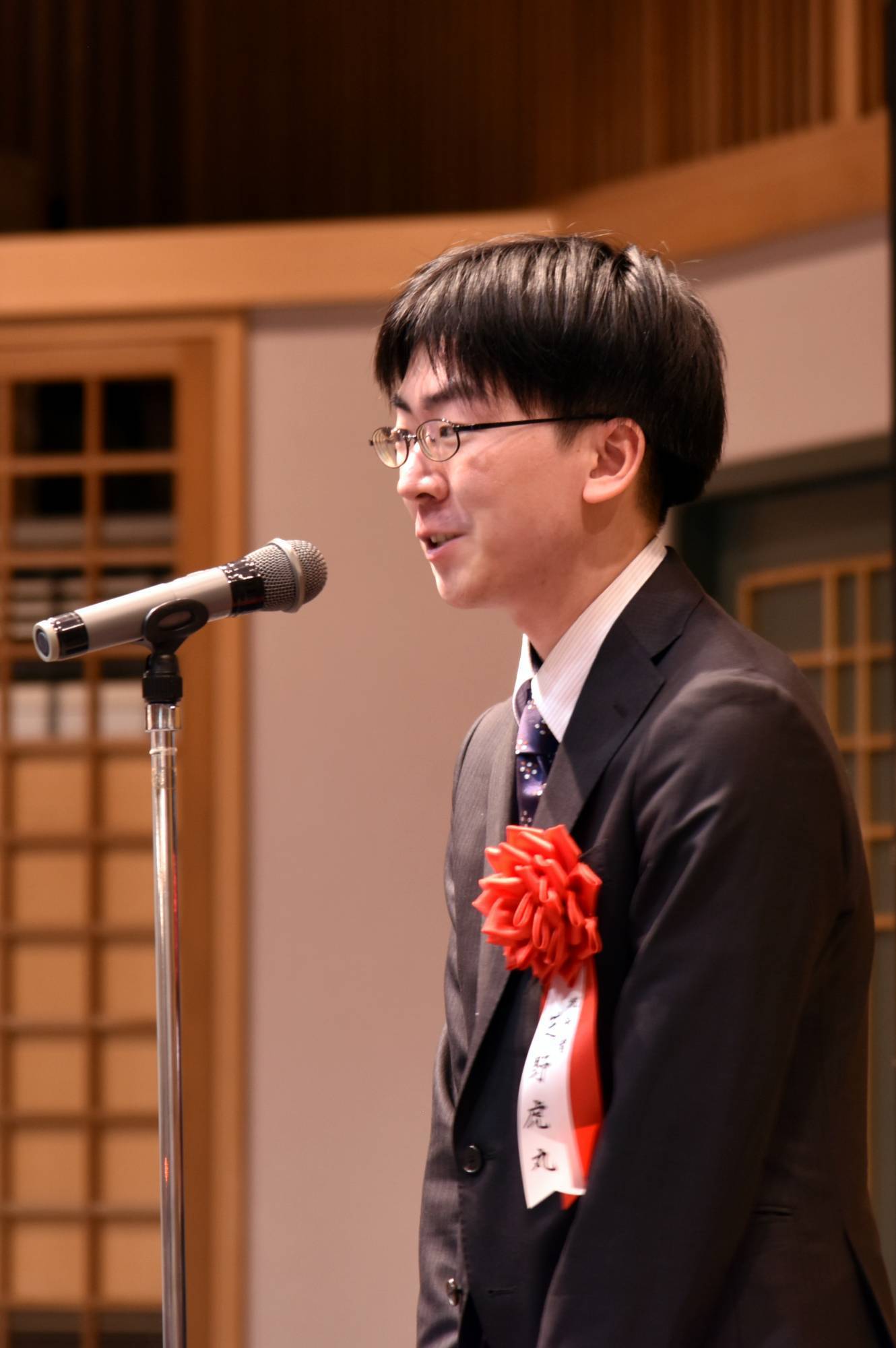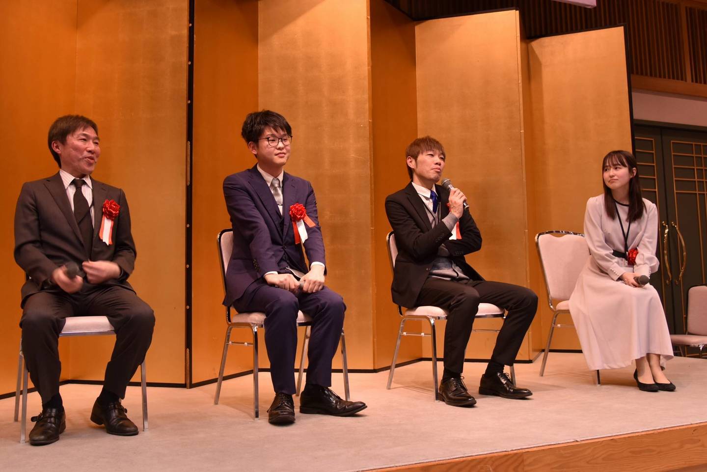 対局に先立ち29日に行われた前夜祭では、62名の参加者を前に両対局者が意気込みを語りました。
