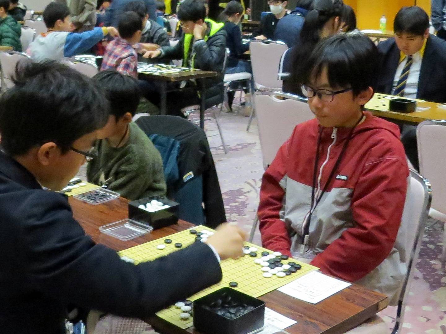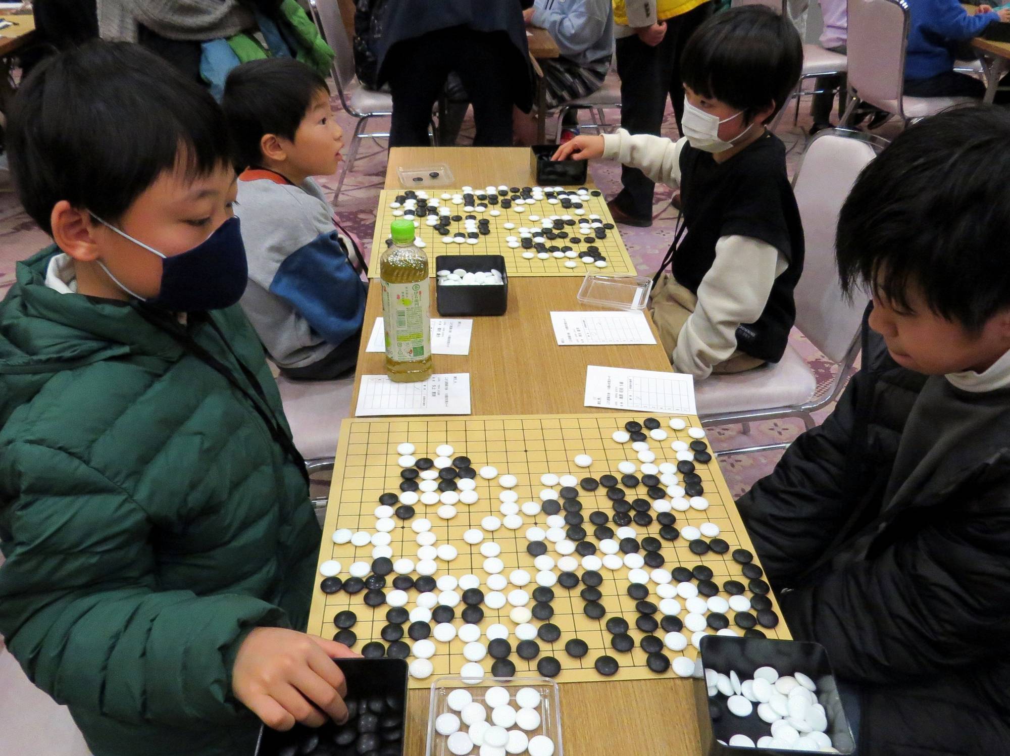 次世代を担う39名の小中高生が参加。静かな熱気の中、真剣な表情で盤に向き合いました。運営には因島高等学校囲碁部の宮地虎太郎さんがボランティアとして参加。対局相手を務めるなど円滑な進行を支えました。